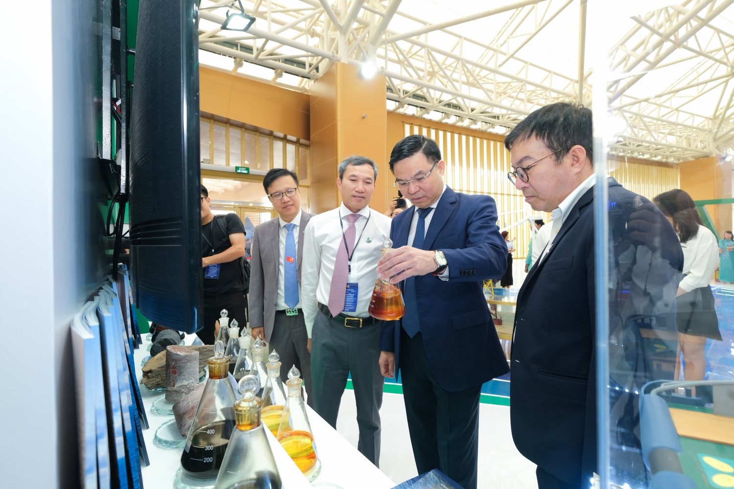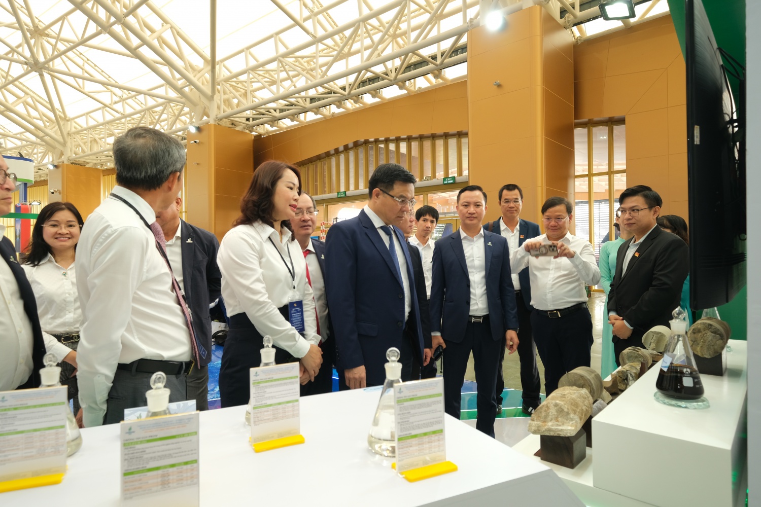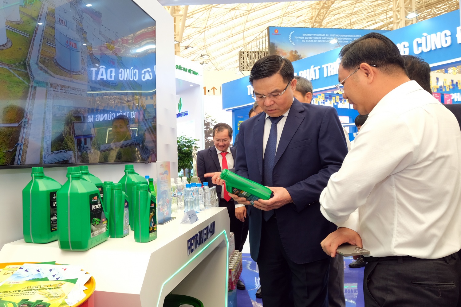Lãnh đạo Petrovietnam kiểm tra gian trưng bày sản phẩm của PVOIL