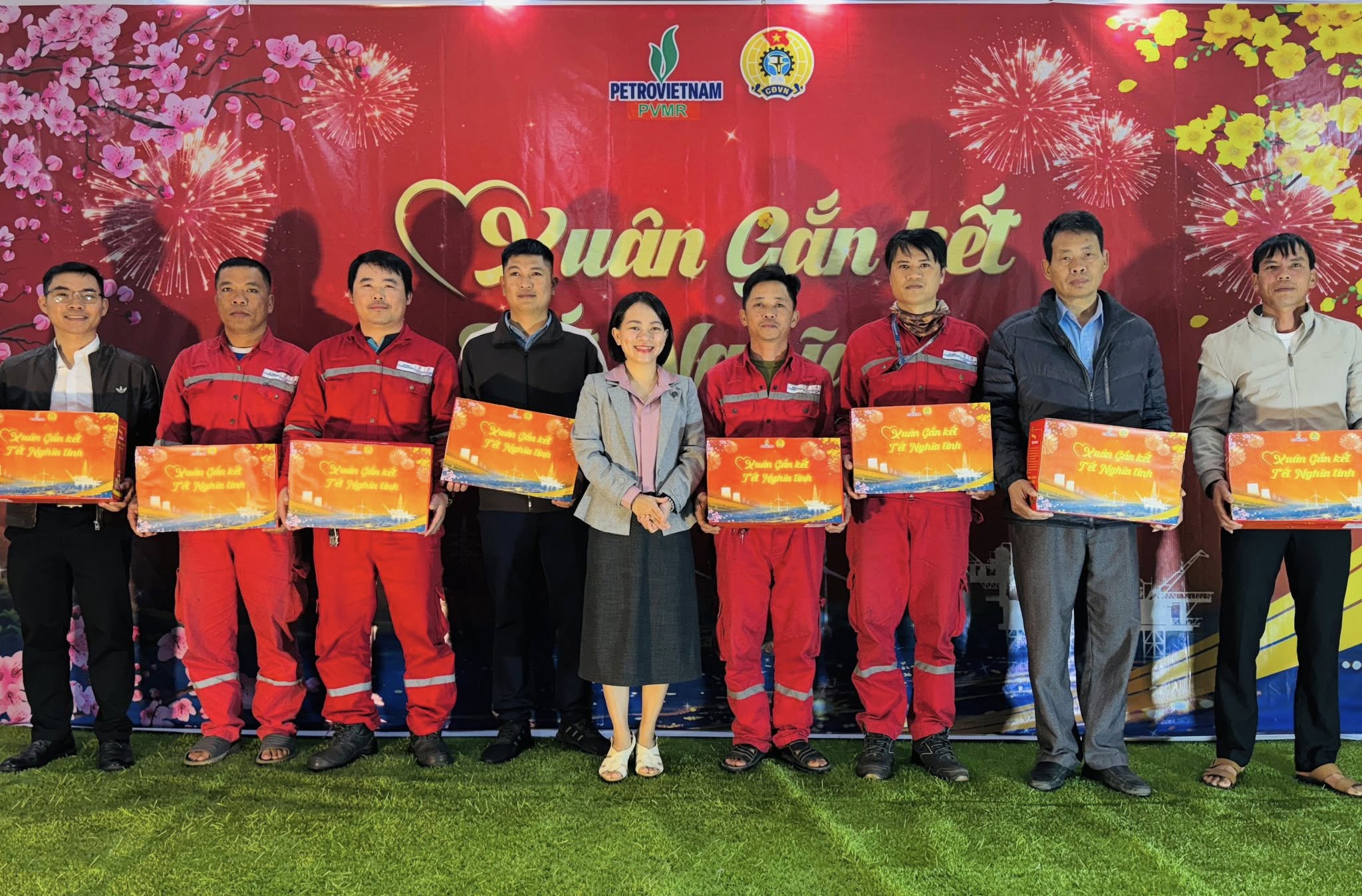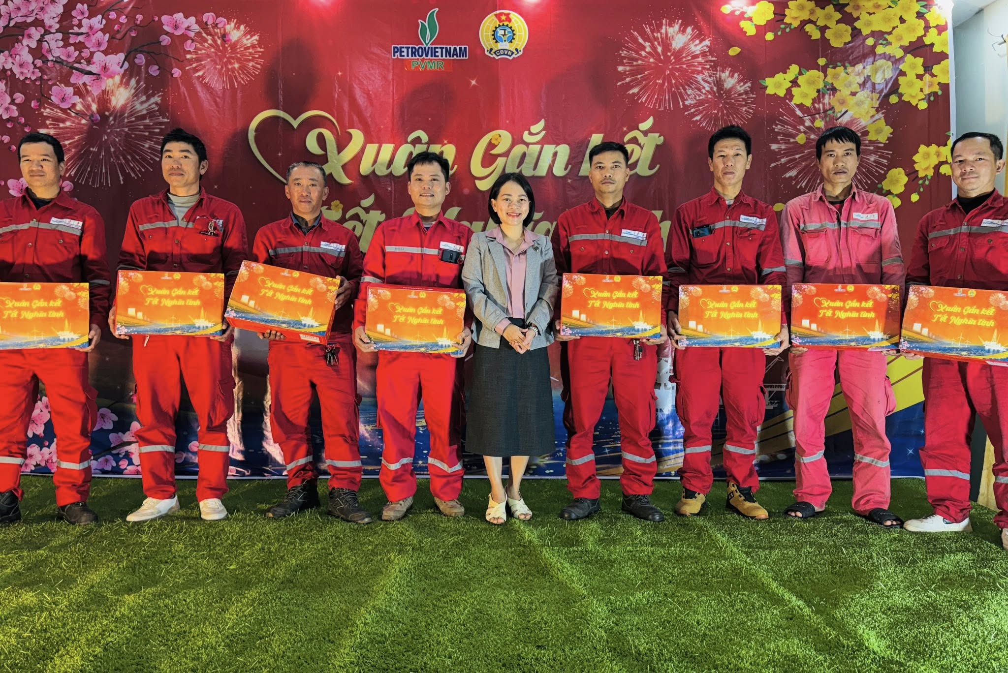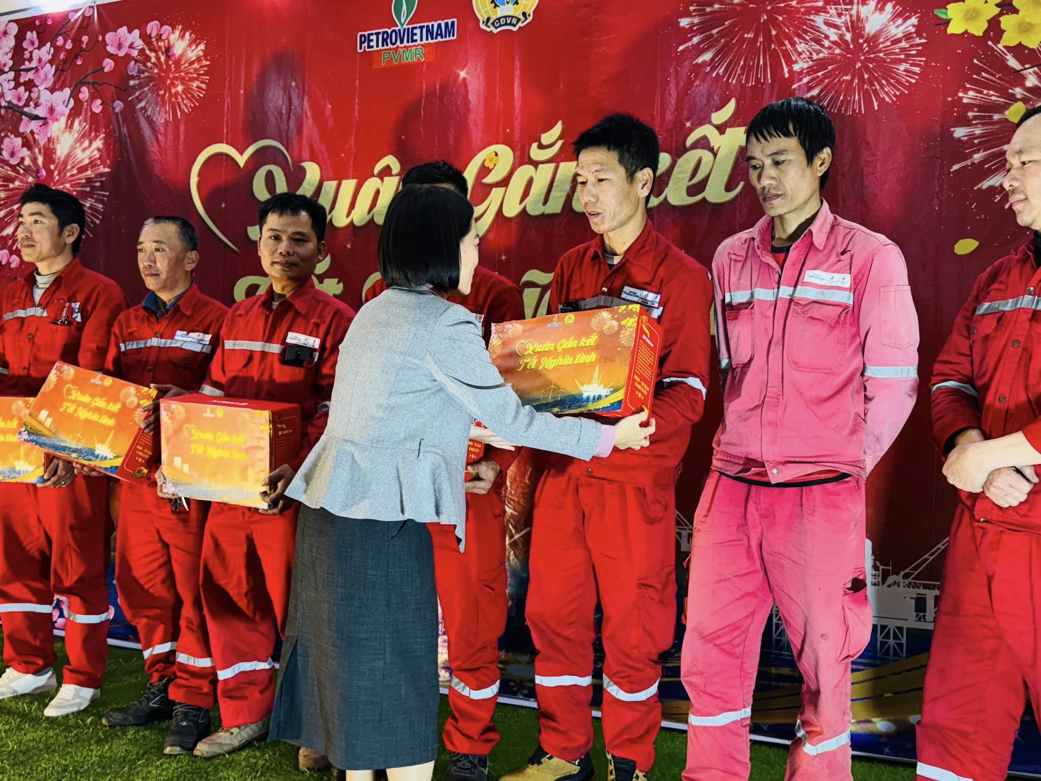 Tại buổi lễ, bà Nguyễn Thị Thanh Hiền – thay mặt Công đoàn Tổng công ty PVMR – đã trực tiếp trao tặng những phần quà Tết thiết thực, gửi gắm sự thăm hỏi, động viên và ghi nhận sâu sắc những đóng góp của người lao động trong thời gian qua.