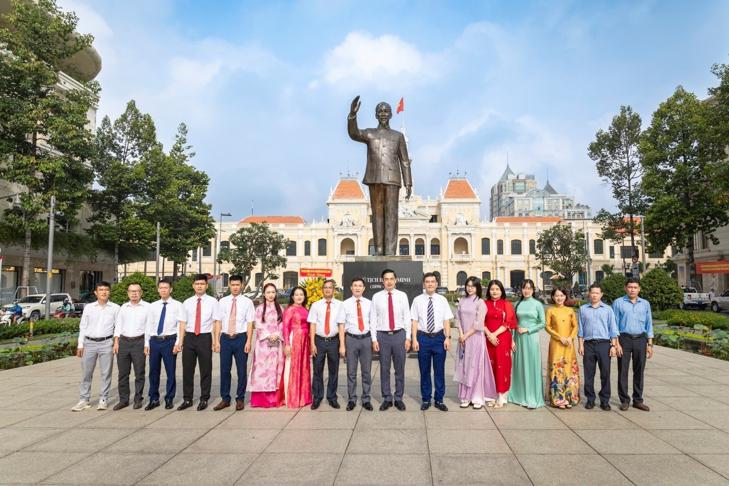 Chụp hình lưu niệm tại lễ dâng hoa tượng đài Chủ tịch Hồ Chí Minh