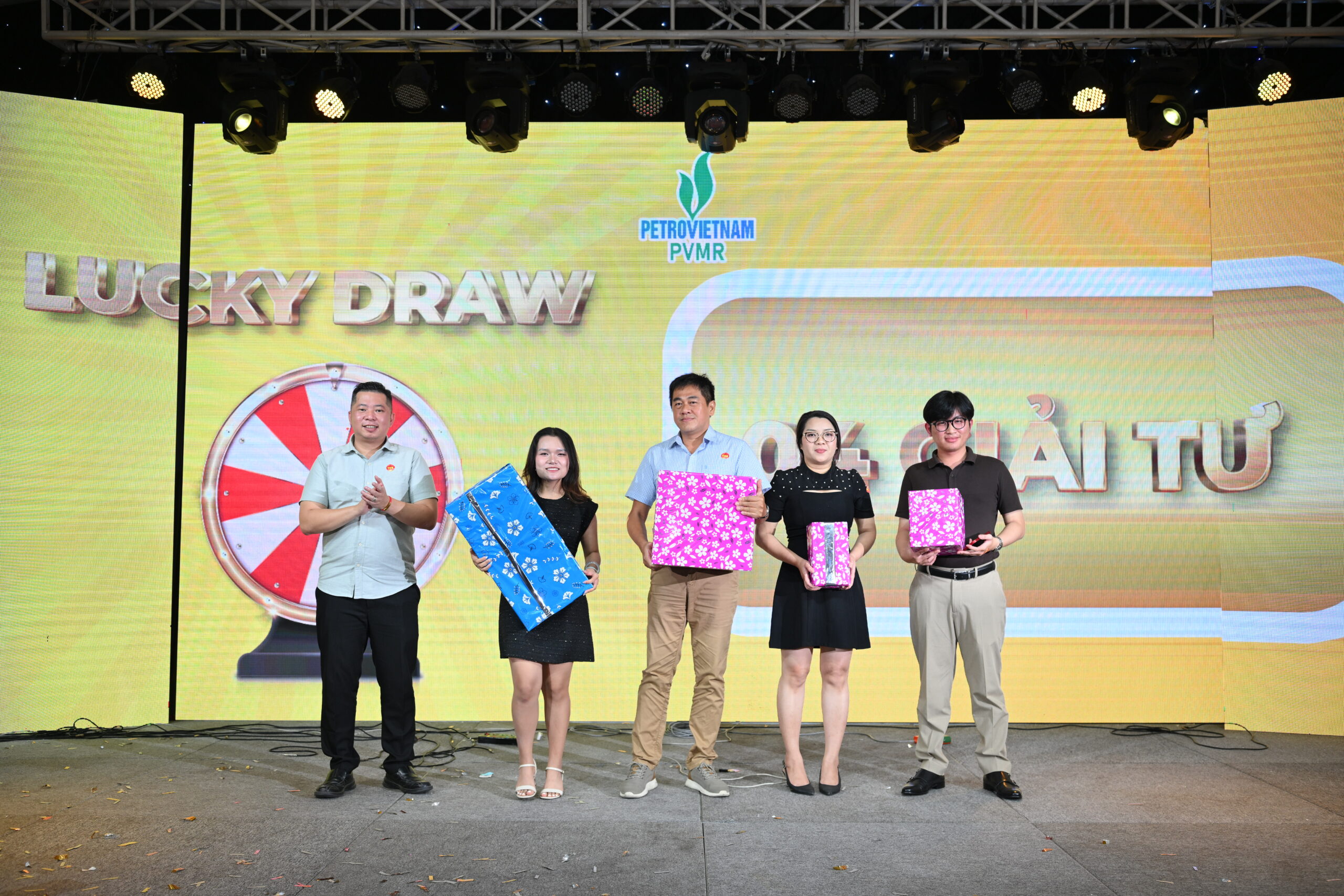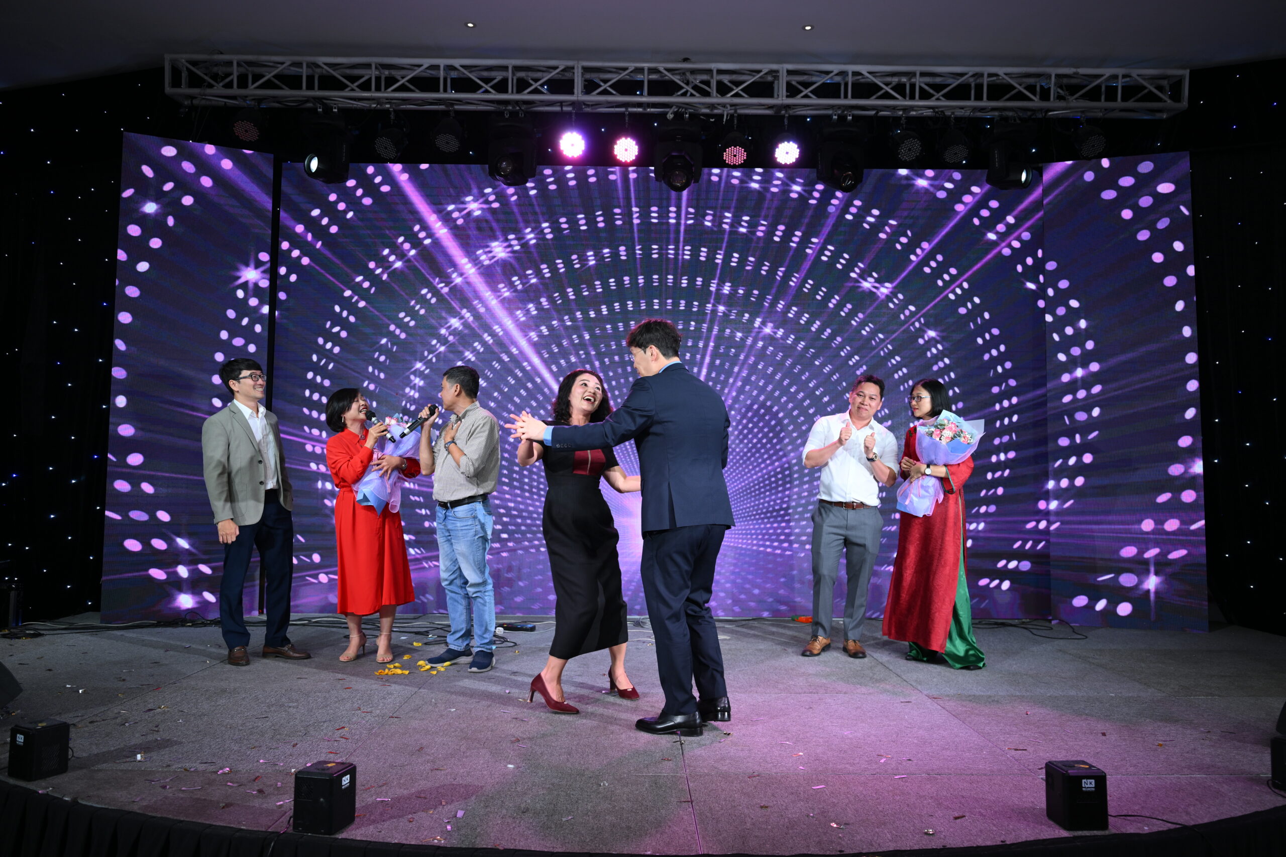 Phần tiệc được tiếp nối bằng những giai điệu sôi động từ ban nhạc chuyên nghiệp, với nhiều ca khúc về mùa xuân và sum họp. Không khí càng thêm náo nhiệt qua chương trình Lucky Draw với cơ cấu giải thưởng hấp dẫn, mang đến những bất ngờ thú vị và tiếng cười rộn rã cho những người tham dự.